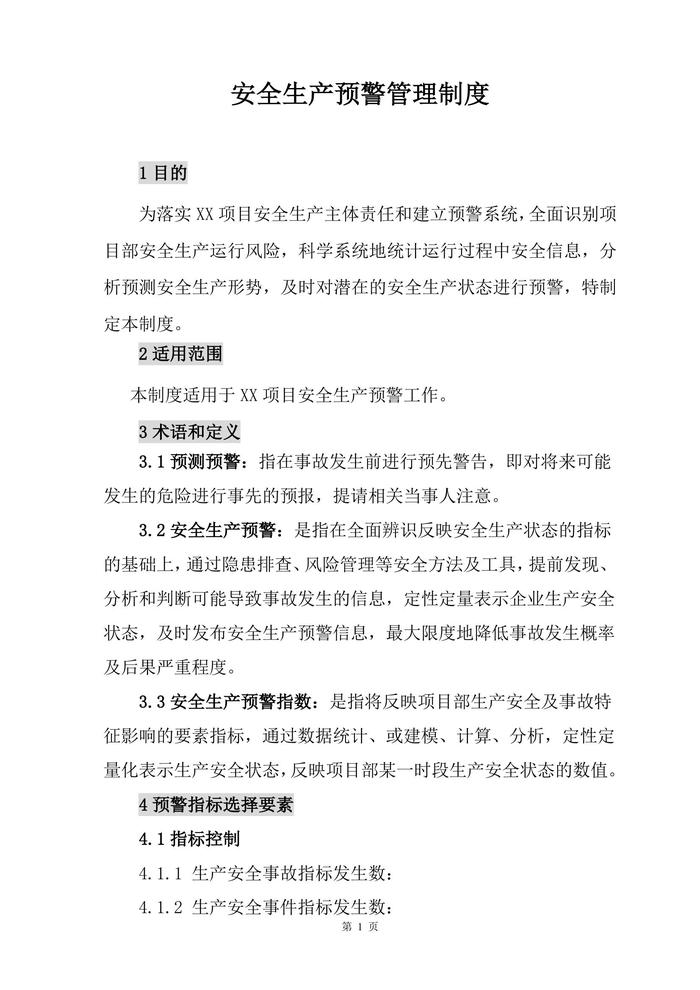 XX公司安全生產(chǎn)預(yù)警管理制度(11頁(yè))docx