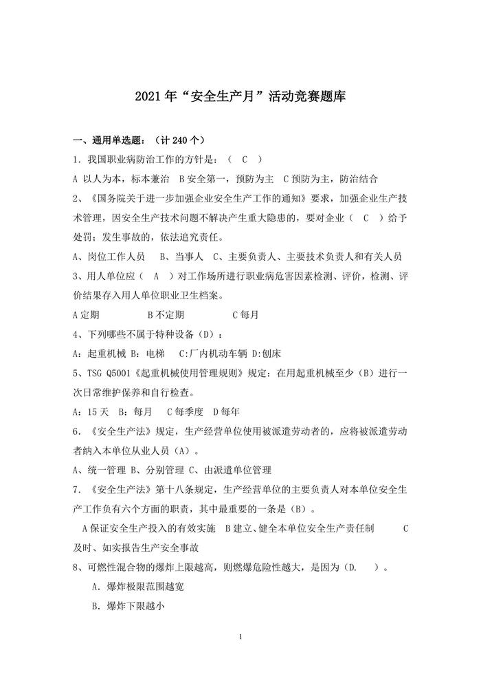 【題庫】2021年安全生產(chǎn)月選擇題題庫doc
