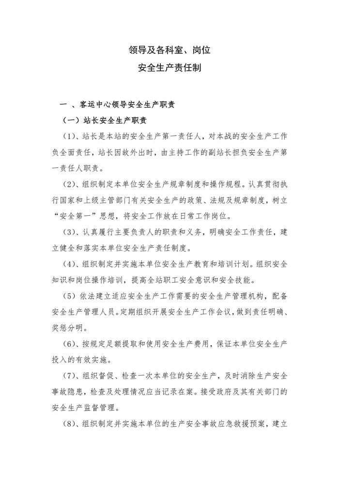 汽車客運(yùn)站安全生產(chǎn)責(zé)任制匯編(20頁)(1)doc