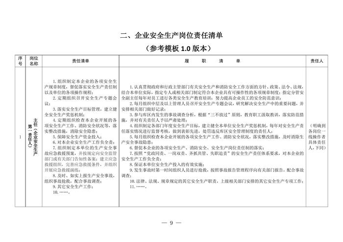 24號(附件)-糧食和物資儲備企業(yè)安全生產(chǎn)管理責(zé)任清單參考模板(10版)doc