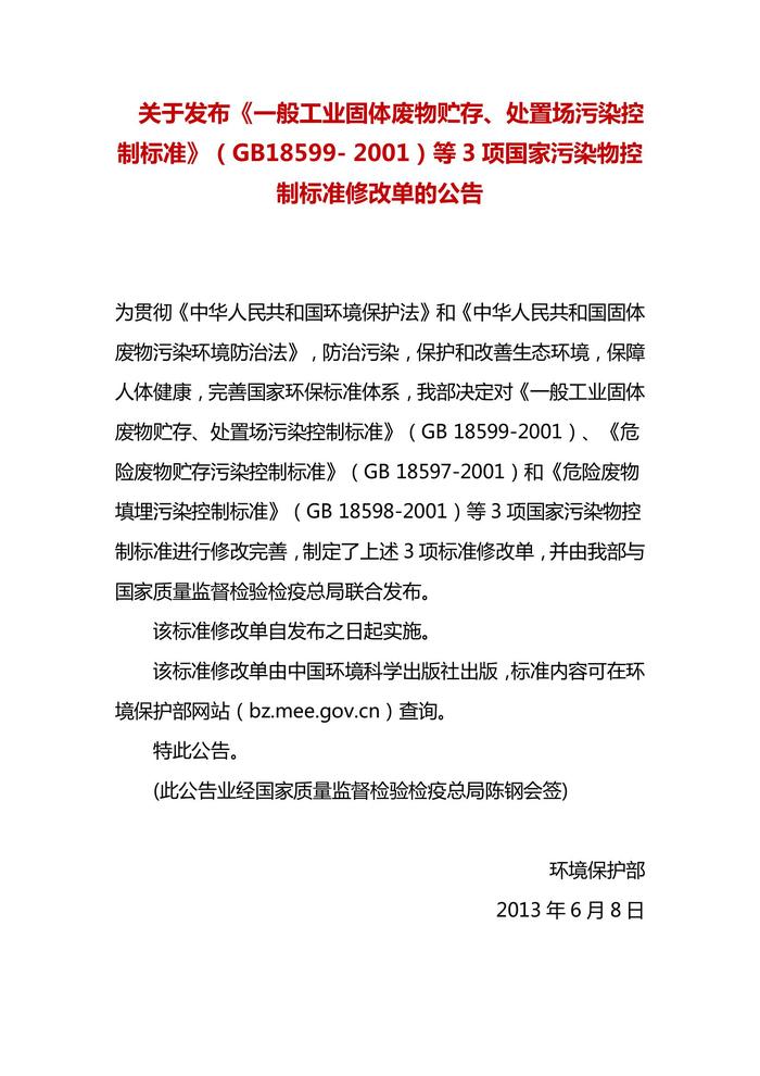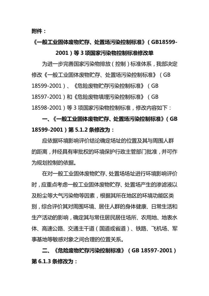關(guān)于發(fā)布《一般工業(yè)固體廢物貯存、處置場污染控制標(biāo)準(zhǔn)》(- 2001)等3項國家污染物控制標(biāo)準(zhǔn)修改單的公告docx 關(guān)于發(fā)布《一般工業(yè)固體廢物貯存、處置場污染控制標(biāo)準(zhǔn)》(- 2001)等3項國家污染物控制標(biāo)準(zhǔn)修改單的公告docx