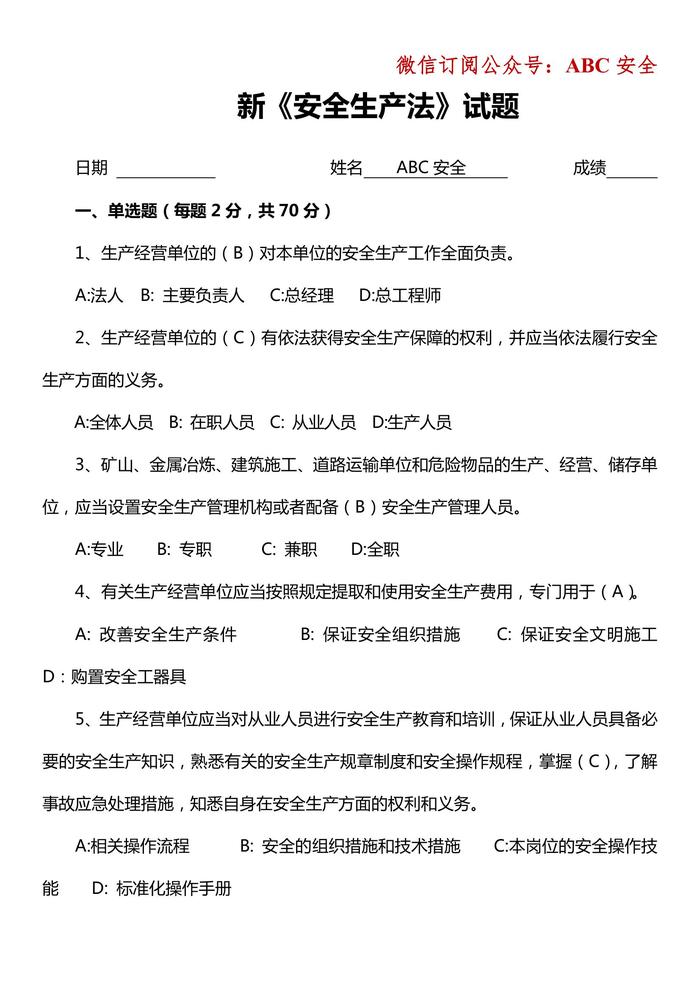 新《安全生產(chǎn)法》試題(最新、最全版)docx