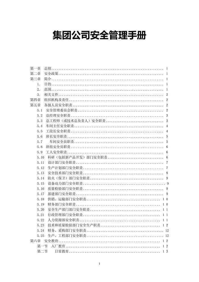 集團公司安全管理手冊doc