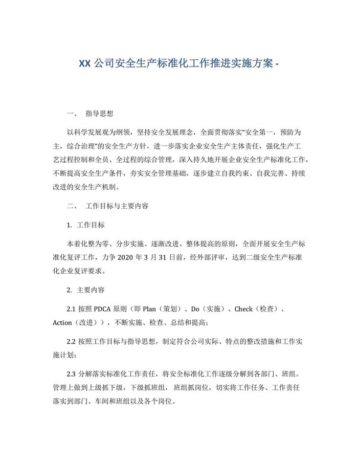 XX公司安全生產(chǎn)標(biāo)準(zhǔn)化工作推進(jìn)實施方案docx
