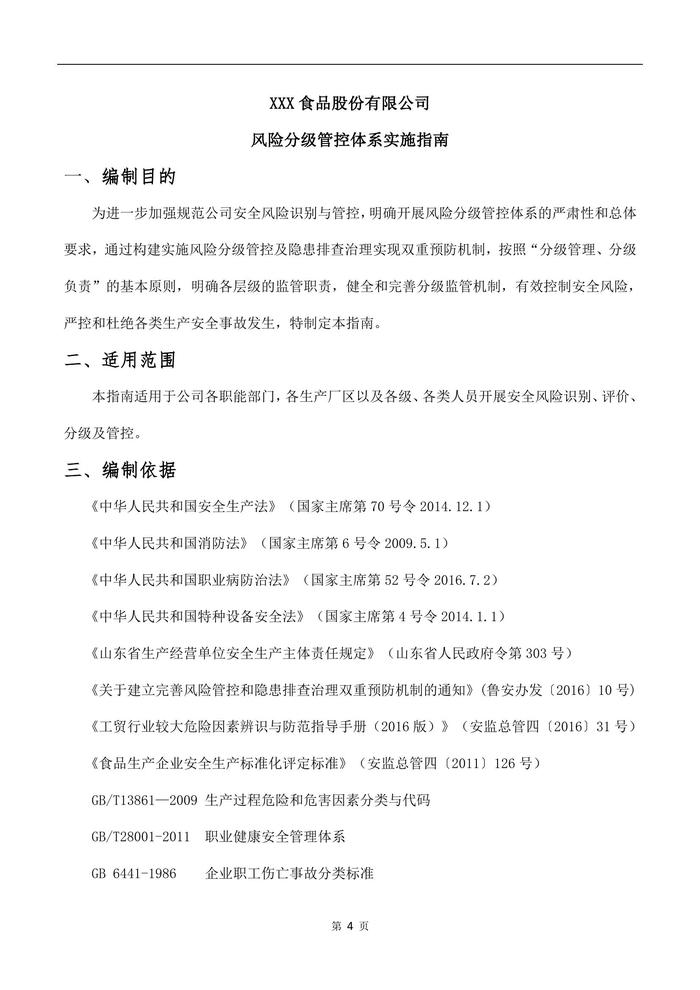 XX食品股份有限公司風(fēng)險(xiǎn)分級(jí)管控體系實(shí)施指南(1)doc