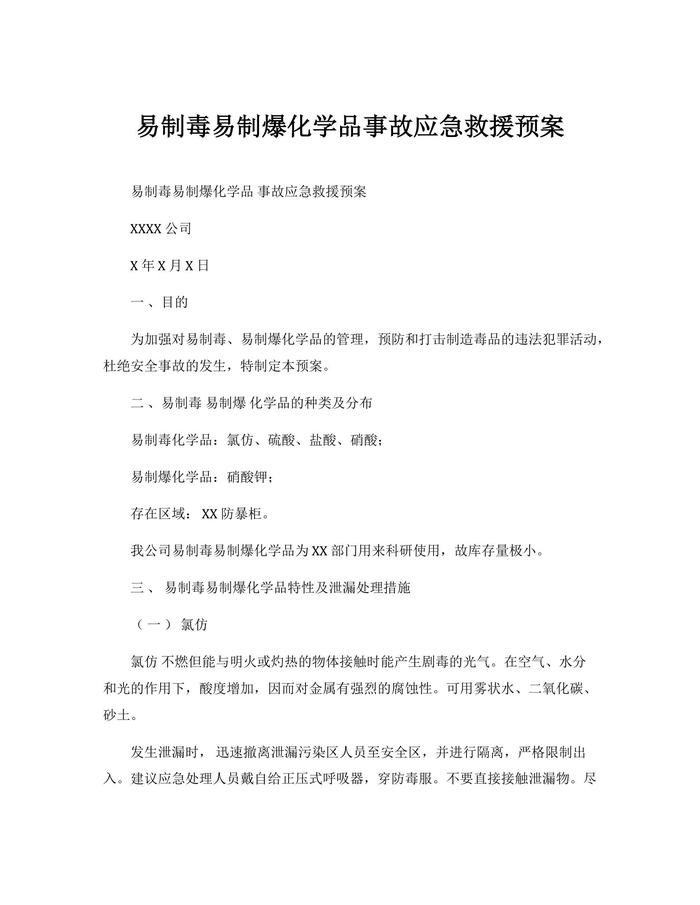 易制毒易制爆化學品事故應急救援預案docx