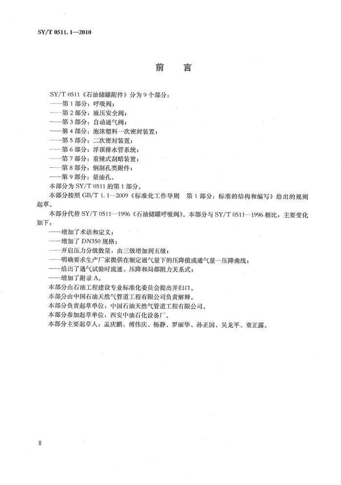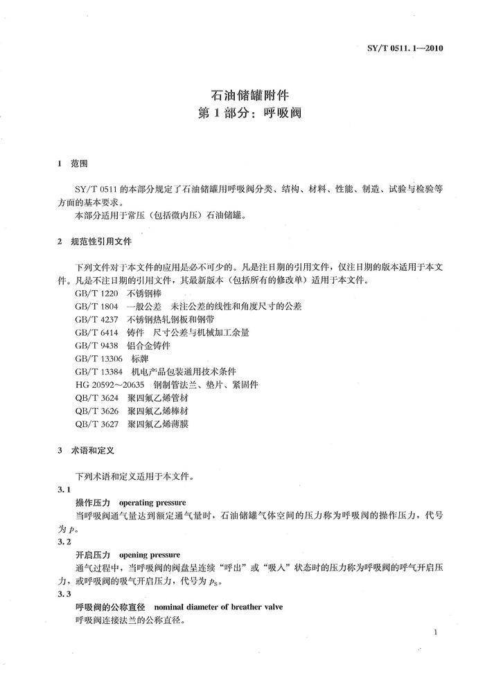 SYT 05111-2010; 石油儲(chǔ)罐附件 第1部分:呼吸閥pdf