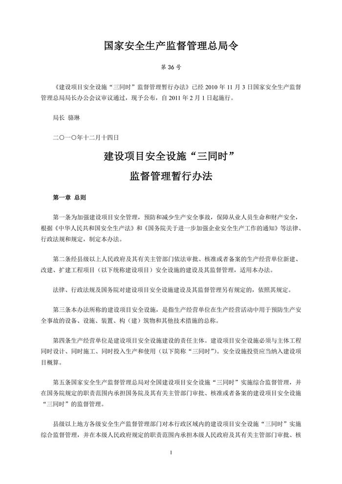 36號令《建設(shè)項(xiàng)目安全設(shè)施“三同時(shí)”監(jiān)督管理暫行辦法》(1)doc