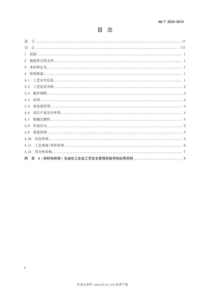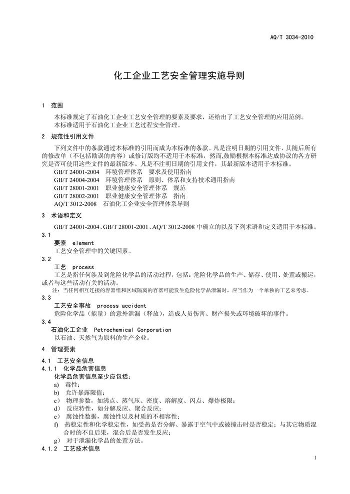 AQT 3034-2010化工企業(yè)工藝安全管理實(shí)施導(dǎo)則pdf