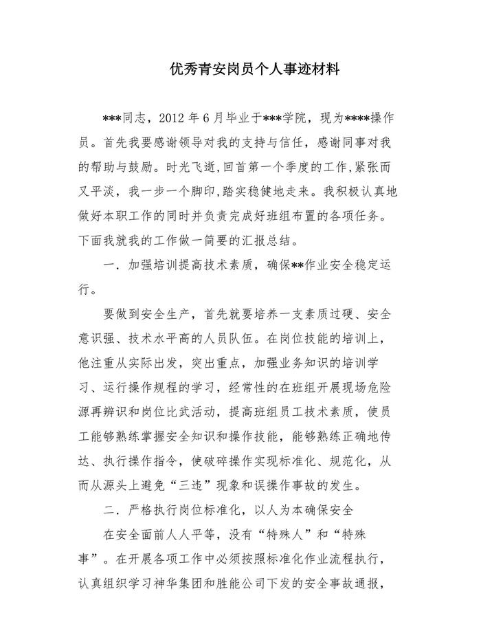 優(yōu)秀青安崗員事跡料docx
