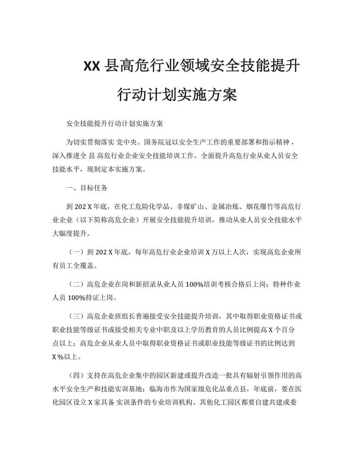 安全技能提升行動計劃實施方案(1)docx