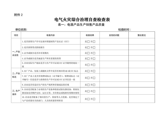 電氣火災(zāi)綜合治理自查檢查表doc