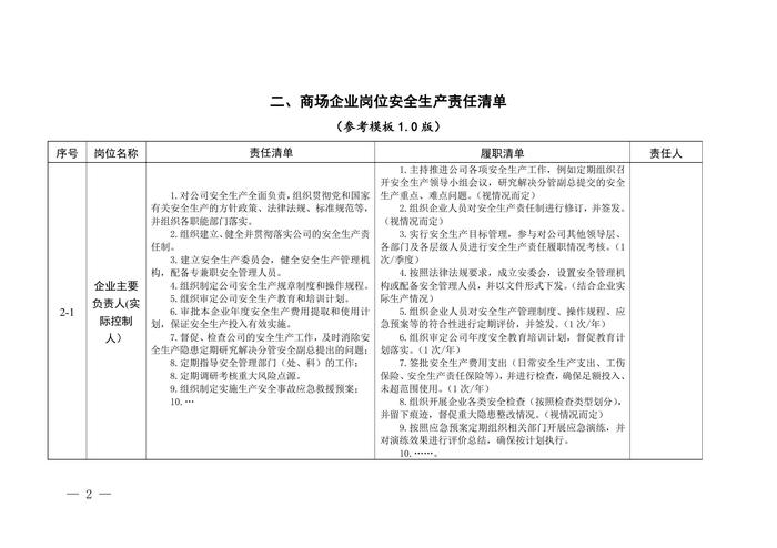 商場(chǎng)企業(yè)安全生產(chǎn)管理責(zé)任清單參考模板(1(1)0版)