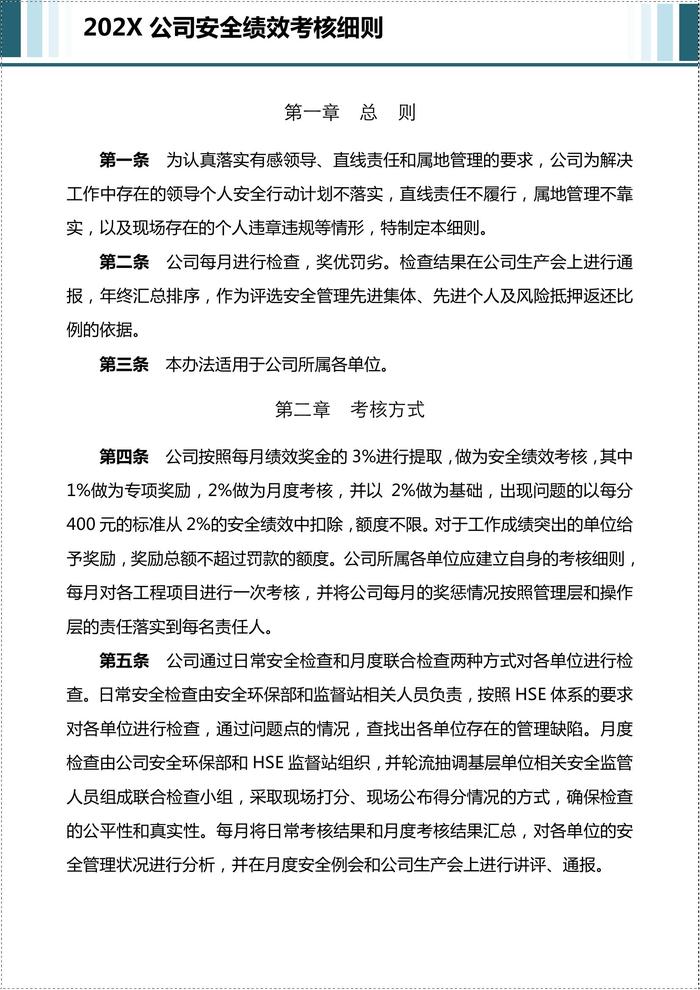 H20220225公司安全績效考核細(xì)則含考核評分表doc
