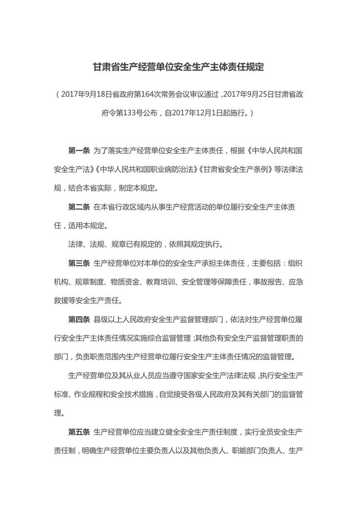 甘肅省生產(chǎn)經(jīng)營單位安全生產(chǎn)主體責(zé)任規(guī)定doc