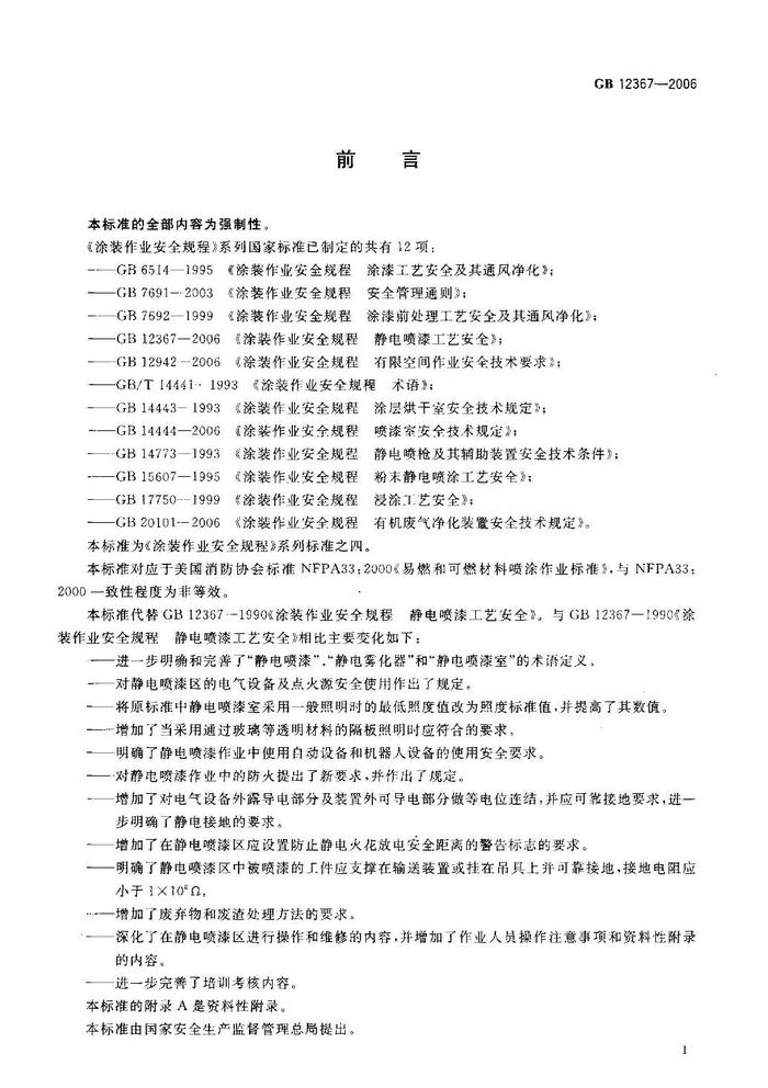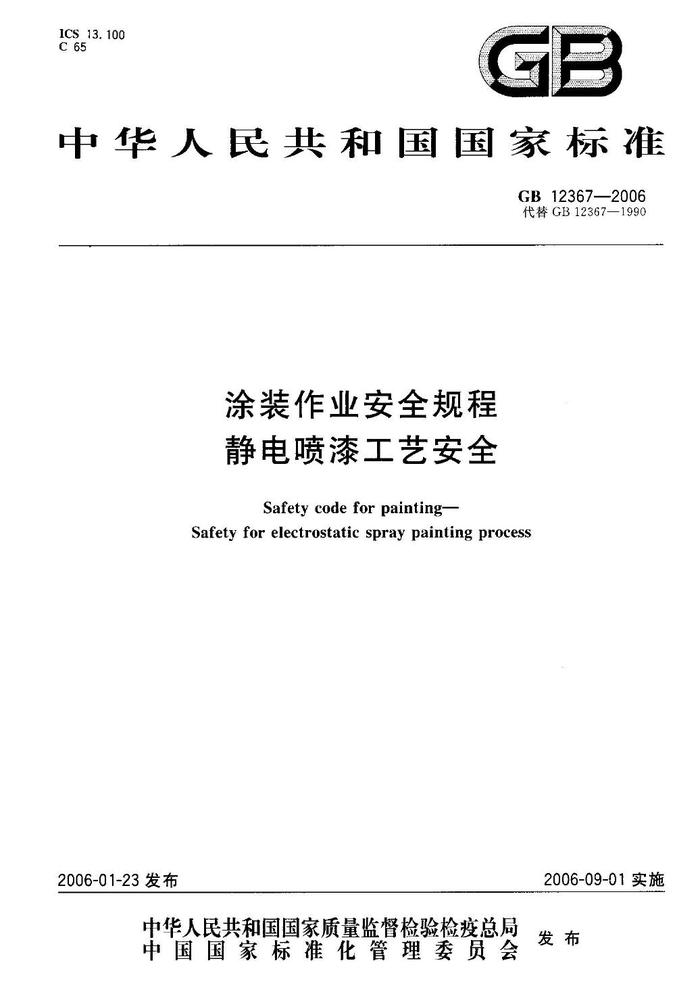 GB-12367-2006-涂裝作業(yè)安全規(guī)程靜電噴漆工藝安全doc