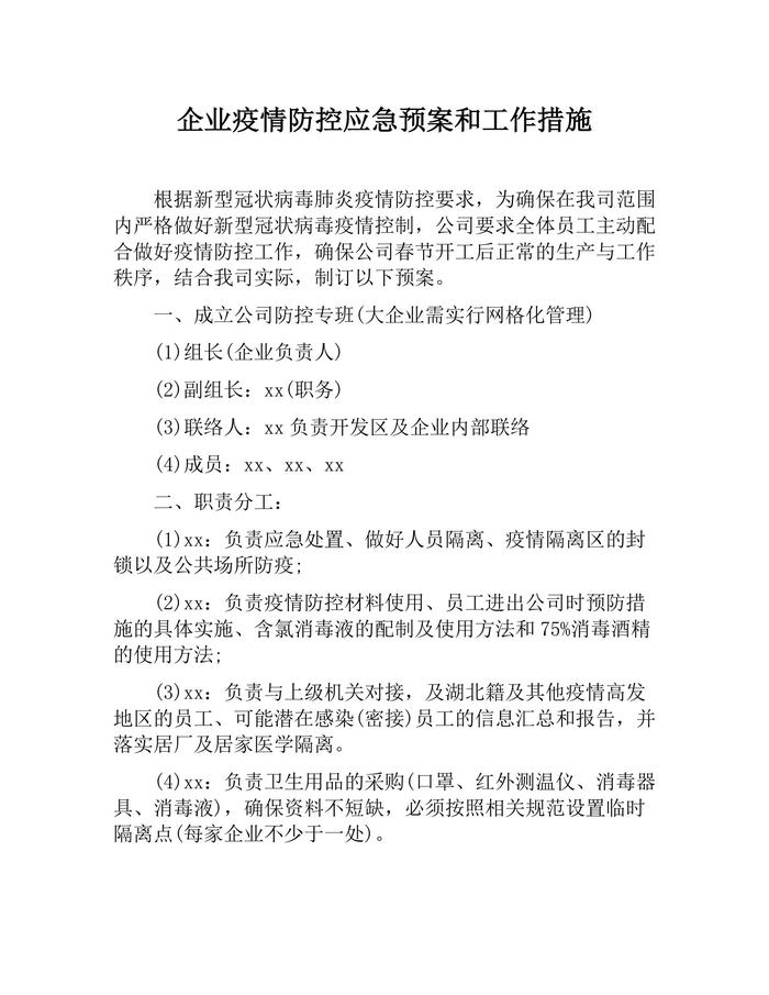 企業(yè)疫情防控應(yīng)急預(yù)案和工作措施(春節(jié)前后)docx