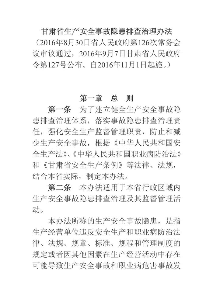 甘肅省生產(chǎn)安全事故隱患排查治理辦法doc