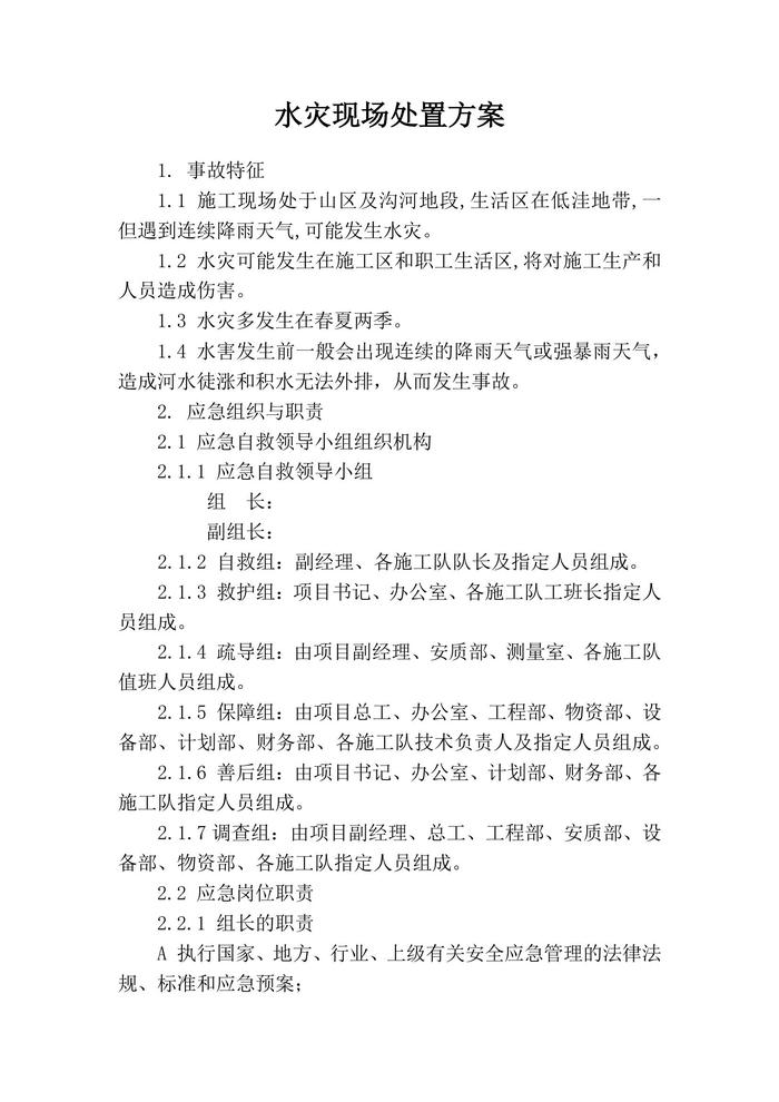 水災(zāi)現(xiàn)場(chǎng)處置方案docx