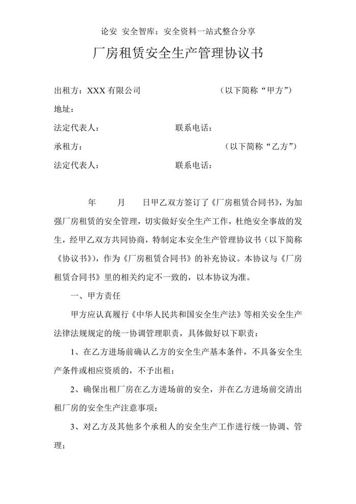 廠房租賃安全生產(chǎn)管理協(xié)議書(4頁)(1)doc