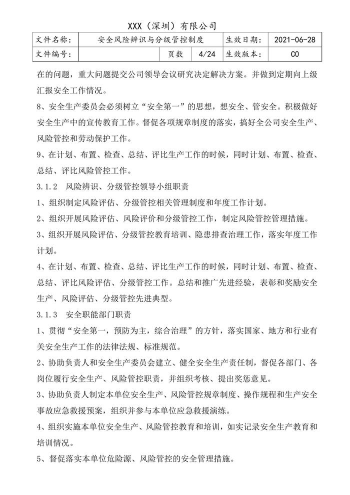 XX公司風(fēng)險辨識與分級管控制度匯編(24頁) doc