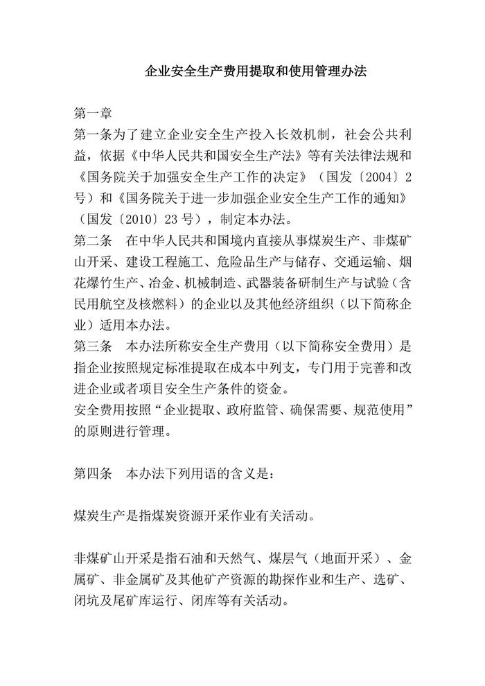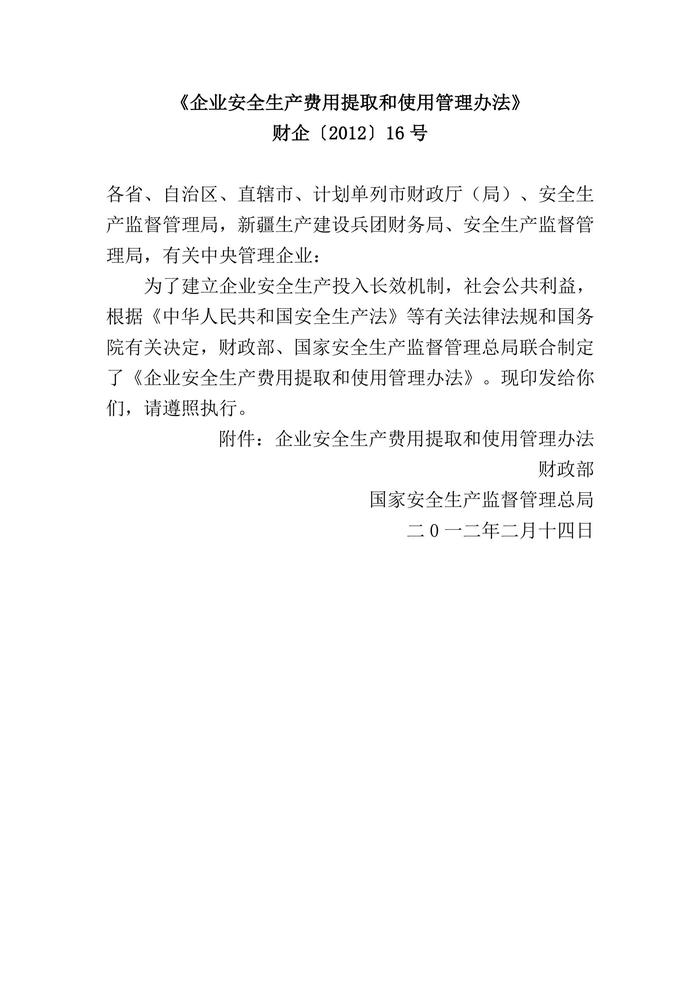 財企〔2012〕16號 企業(yè)安全生產(chǎn)費用提取和使用管理辦法(1)doc