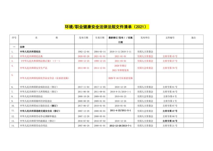 全法律法規(guī)文件清單docx