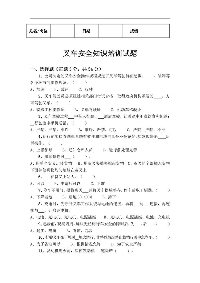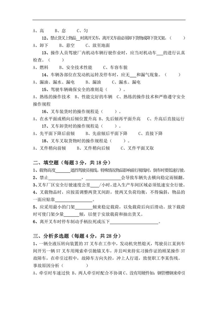 E20210201~叉車安全知識培訓(xùn)試題doc