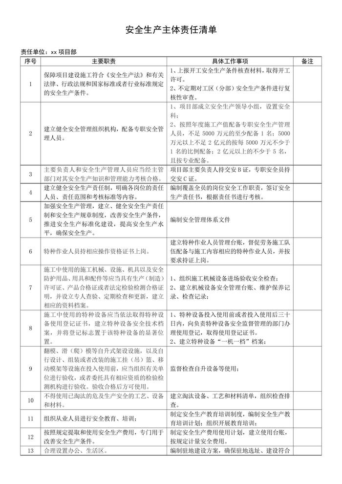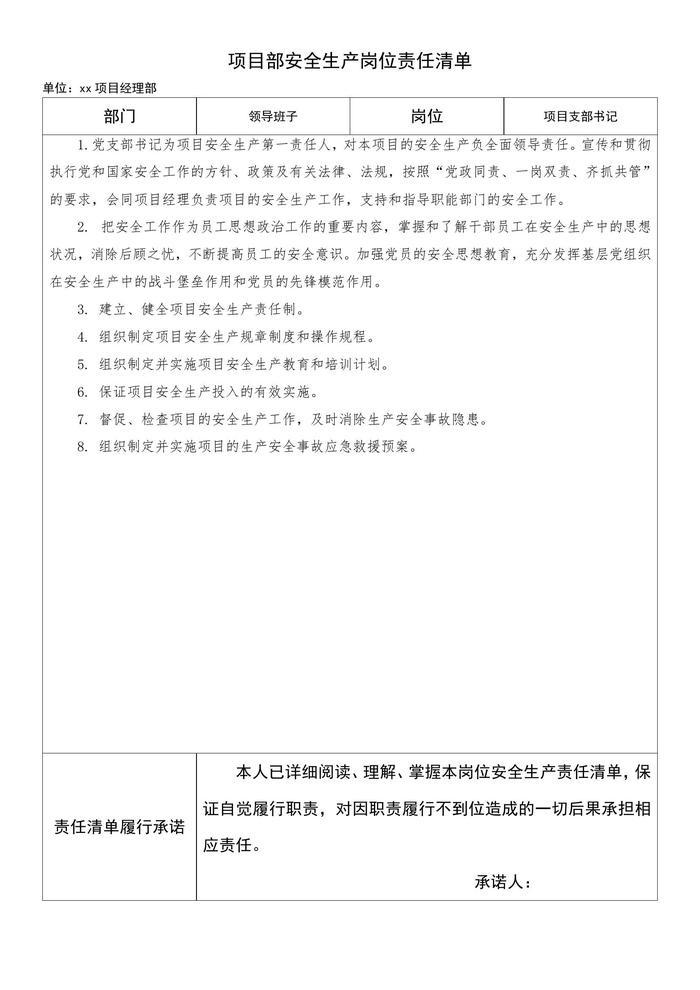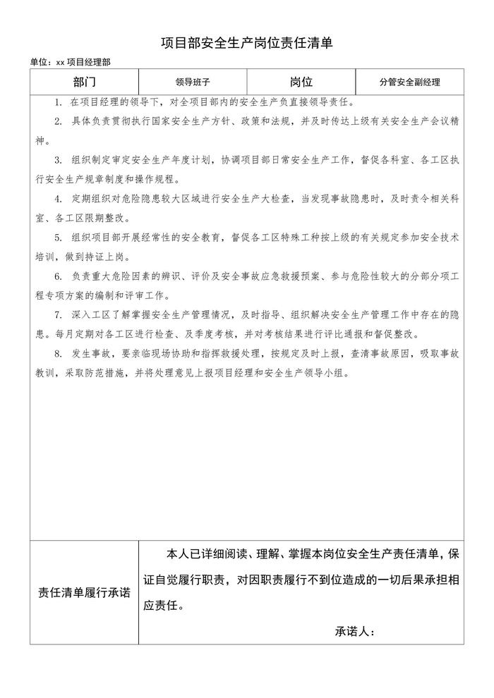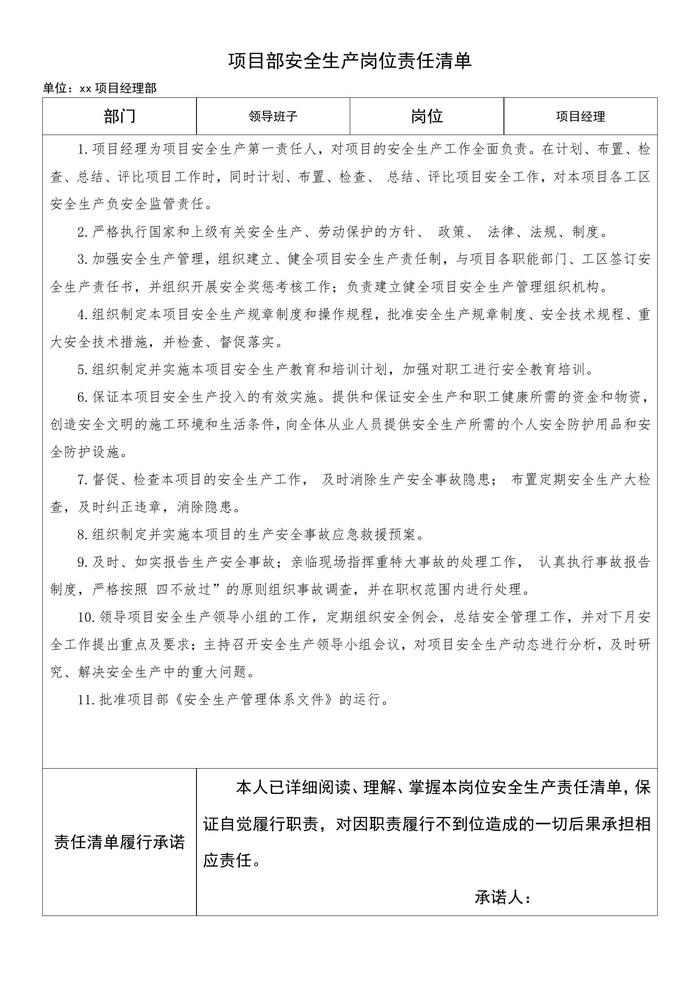 項目部各級安全生產(chǎn)責任制docx