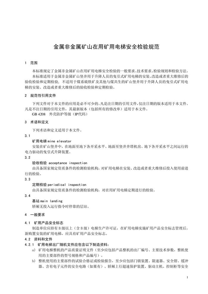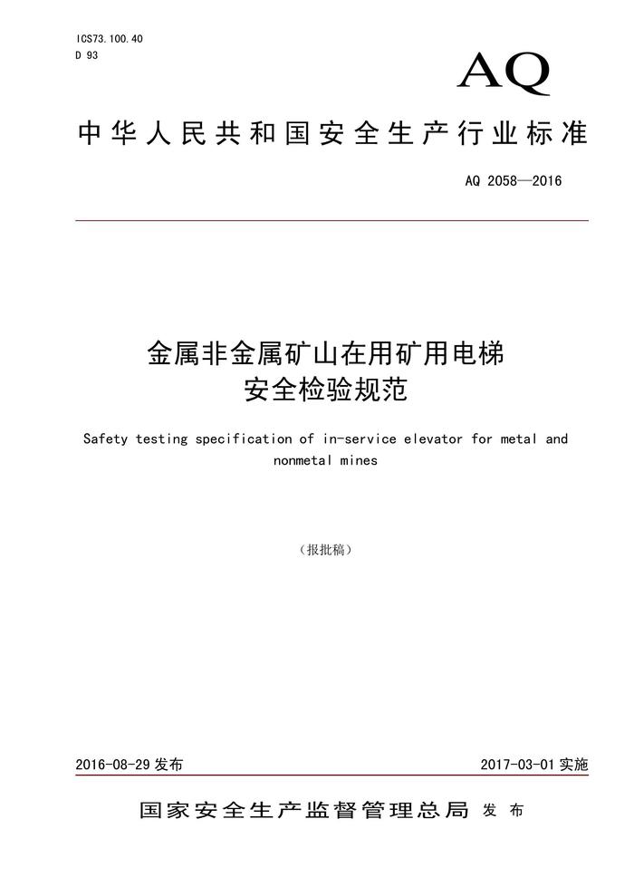 AQ 2058-2016 金屬非金屬礦山在用礦用電梯安全檢驗(yàn)規(guī)范pdf