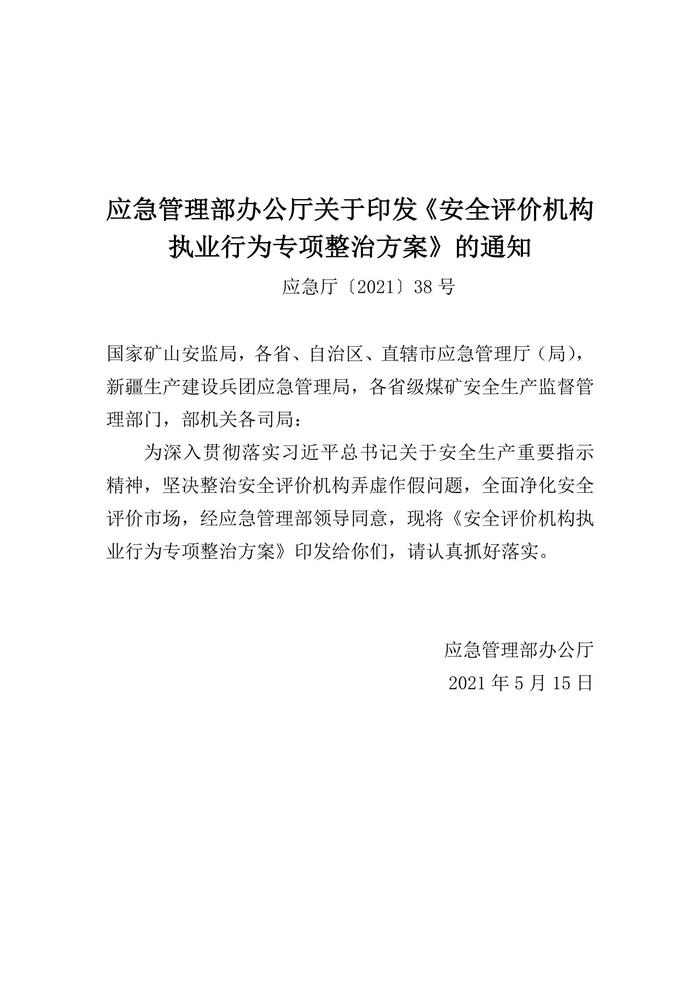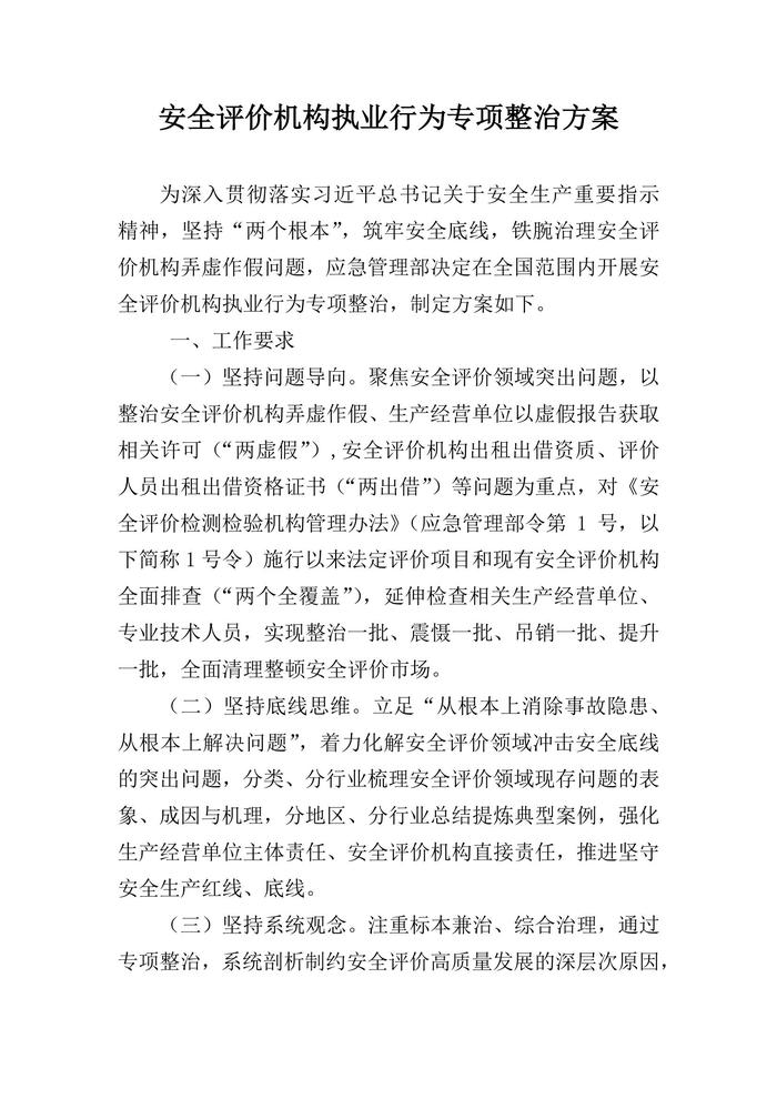 2021年5月發(fā)布《安全評(píng)價(jià)機(jī)構(gòu)執(zhí)業(yè)行為專項(xiàng)整治方案》docx