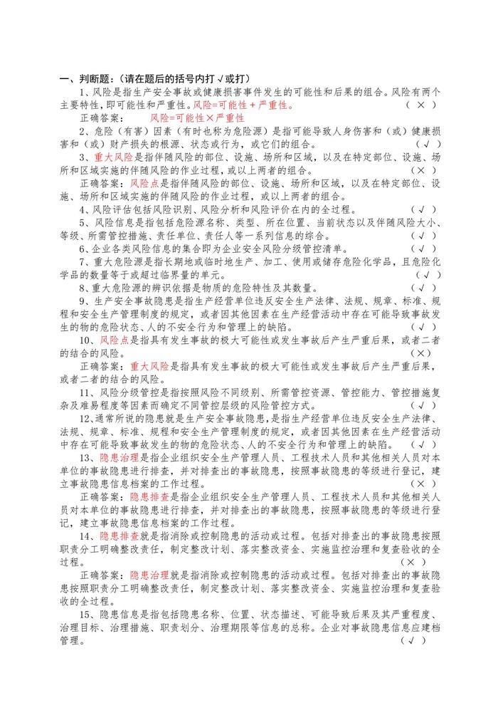 3雙重預(yù)防機(jī)制基礎(chǔ)知識(shí)答題題庫docx