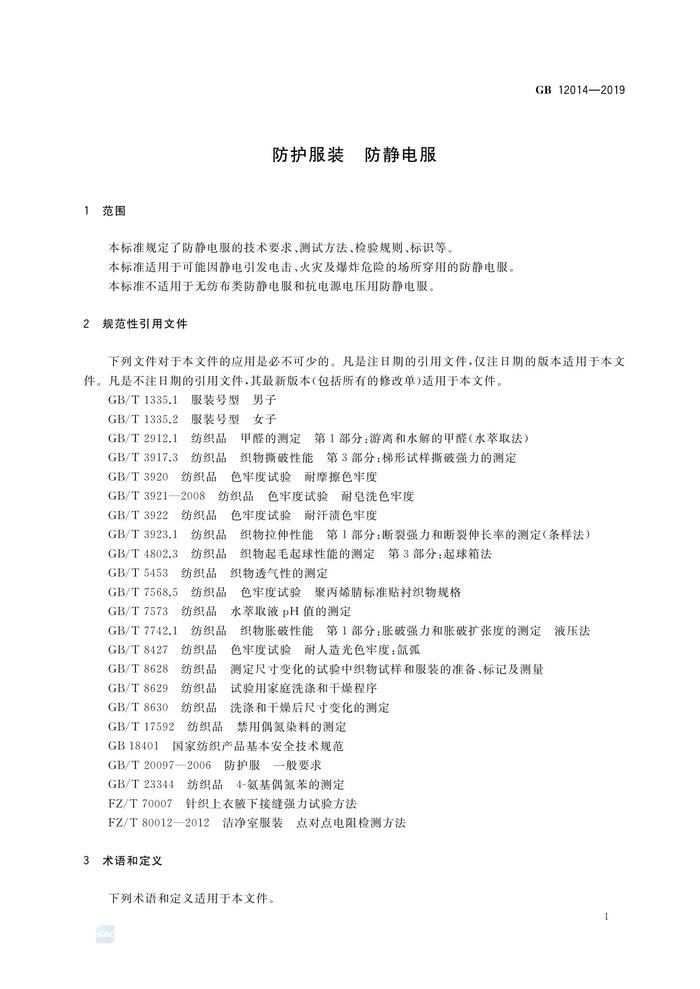 GB 12014-2019 防護(hù)服裝 防靜電服(1)pdf