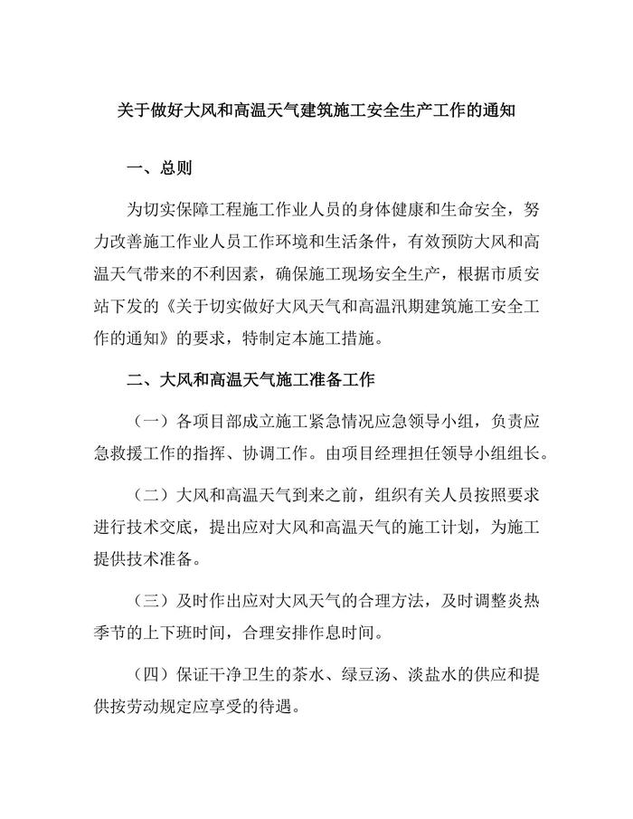 【方案】關于做好大風和高溫天氣安全生產(chǎn)工作的通知docx