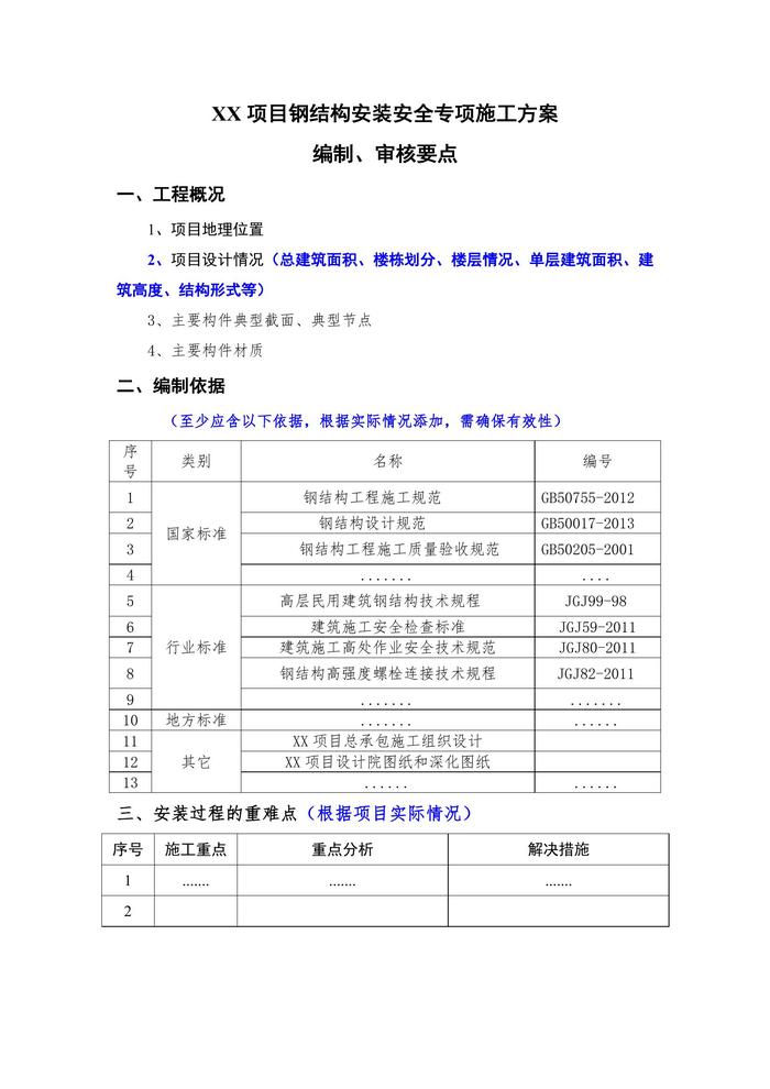鋼結(jié)構(gòu)安裝安全專項(xiàng)施工方案編制、審核要點(diǎn)(1)doc 鋼結(jié)構(gòu)安裝安全專項(xiàng)施工方案編制、審核要點(diǎn)(1)doc