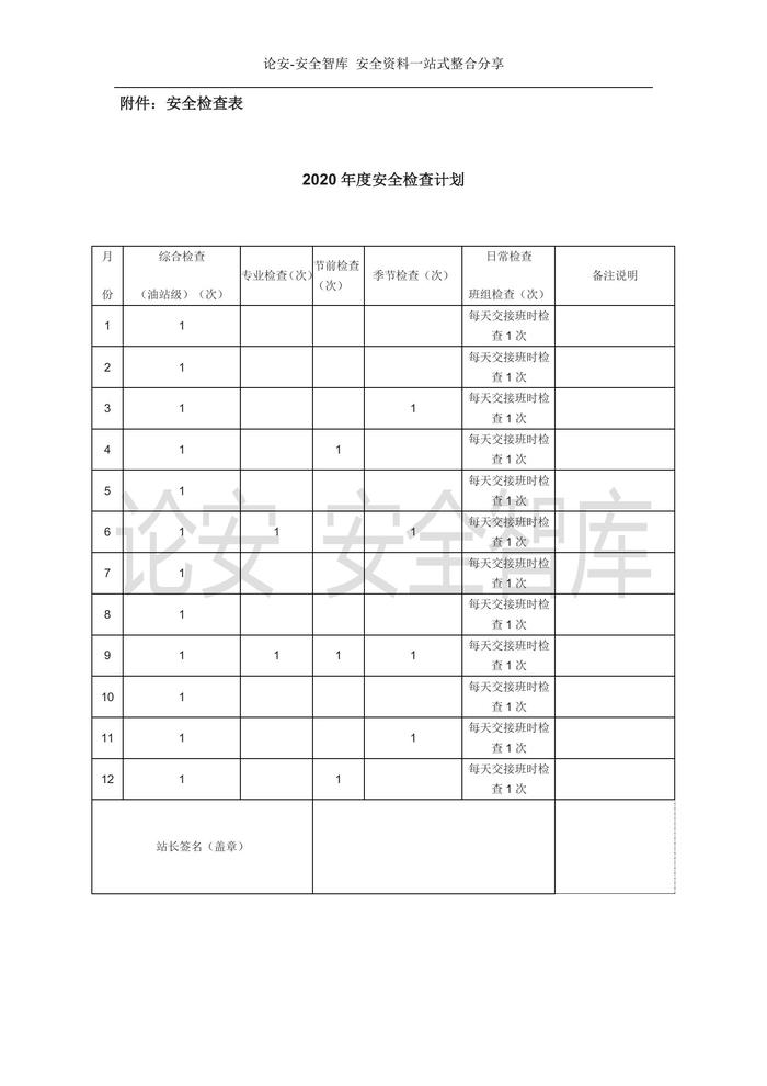 【計劃】2020年度油站安全檢查計劃(1)doc