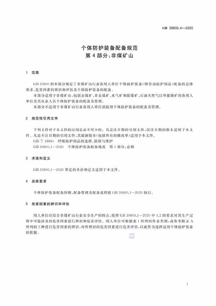 GB 398004-2020 個體防護裝備配備規(guī)范 第4部分:非煤礦山pdf