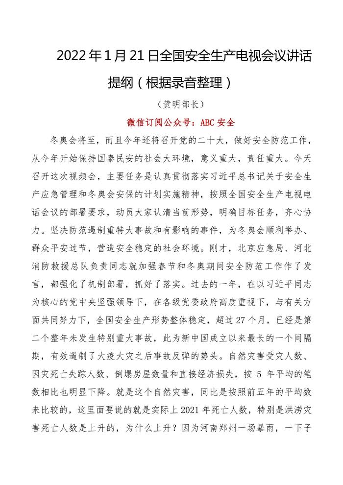 P20220121之2022年1月21日全國(guó)安全生產(chǎn)電視會(huì)議講話提綱doc