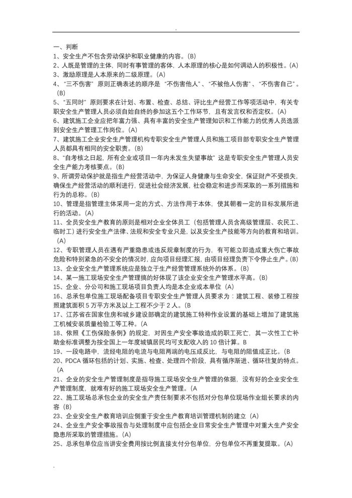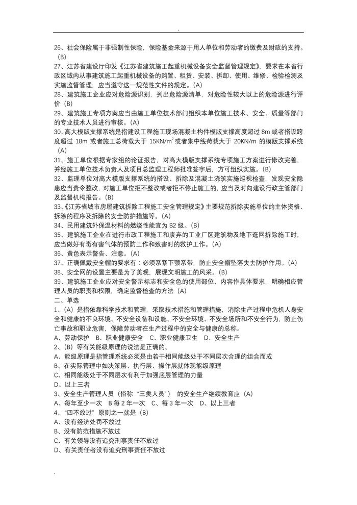 2019年江蘇省c類安全員考試題庫doc