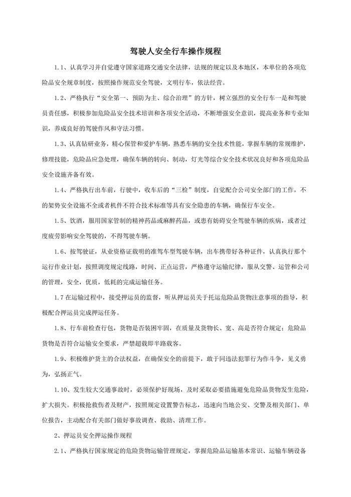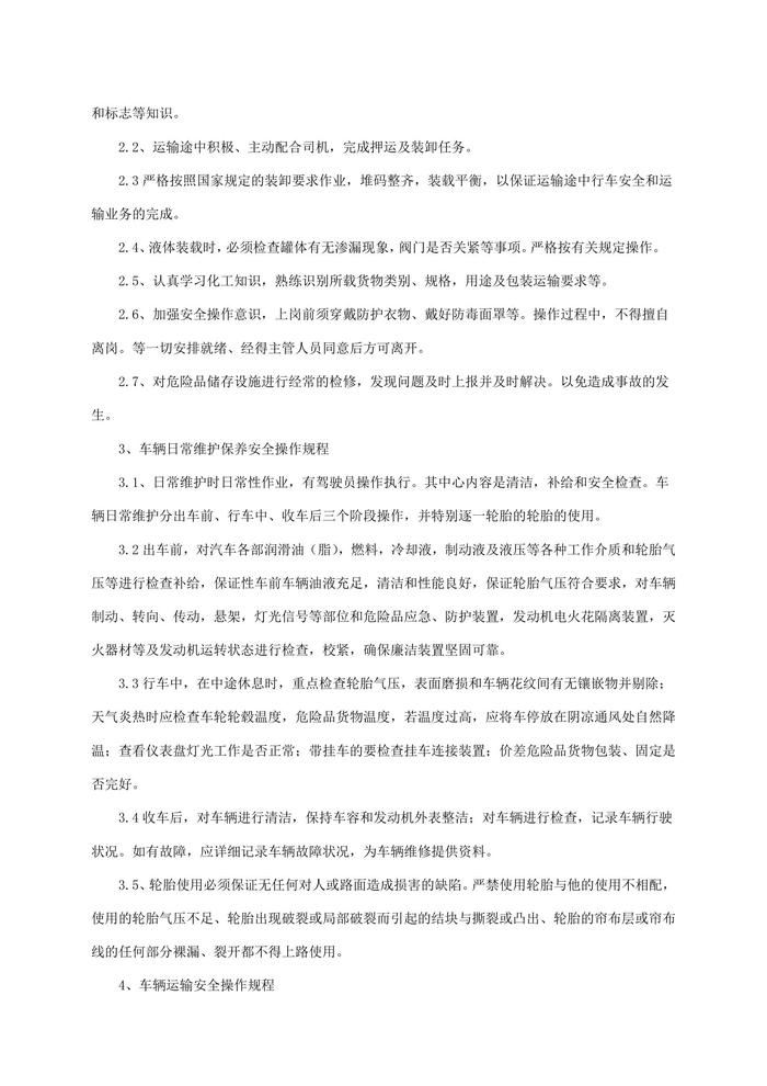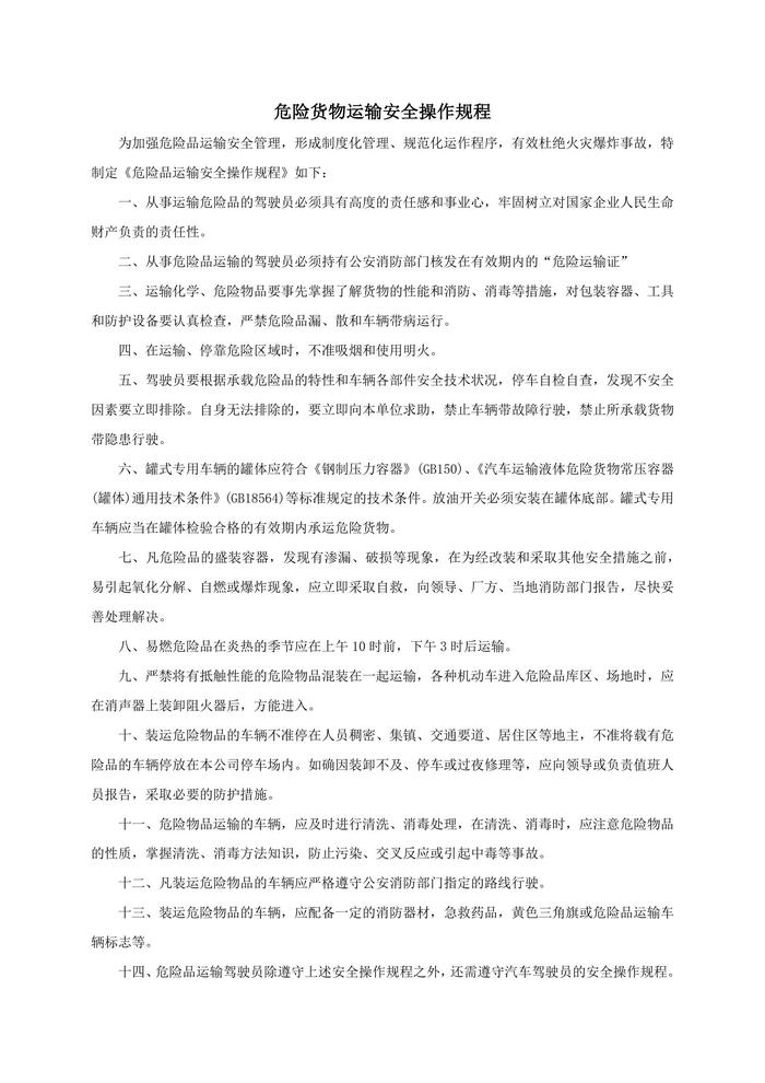 危險(xiǎn)品運(yùn)輸安全操作規(guī)程匯編docx