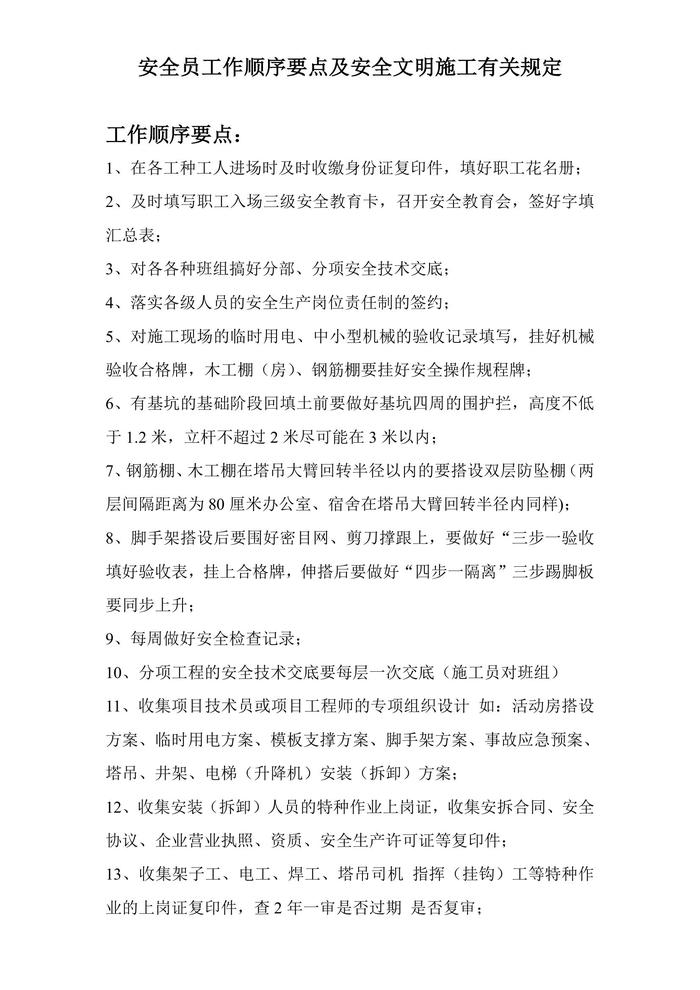 安全員工作順序要點(diǎn)及安全文明施工有關(guān)事項(xiàng)doc