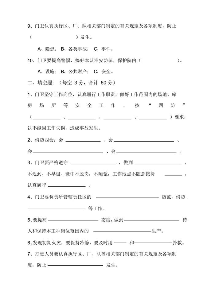 三級(jí)安全教育考試卷-門衛(wèi)(1)docx