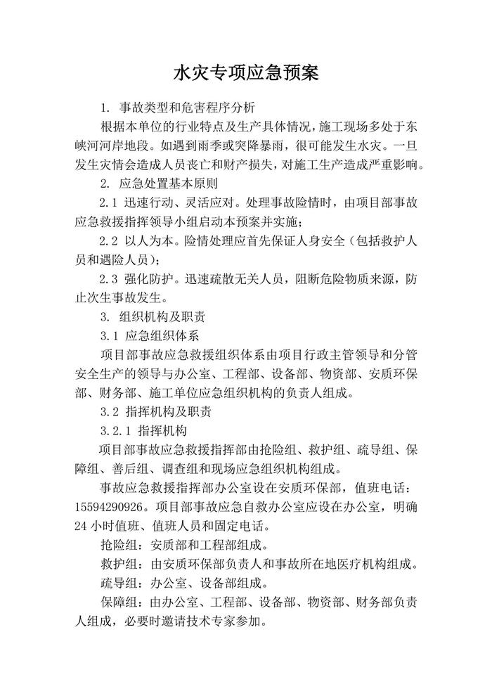 水災(zāi)專項(xiàng)應(yīng)急預(yù)案(1)docx