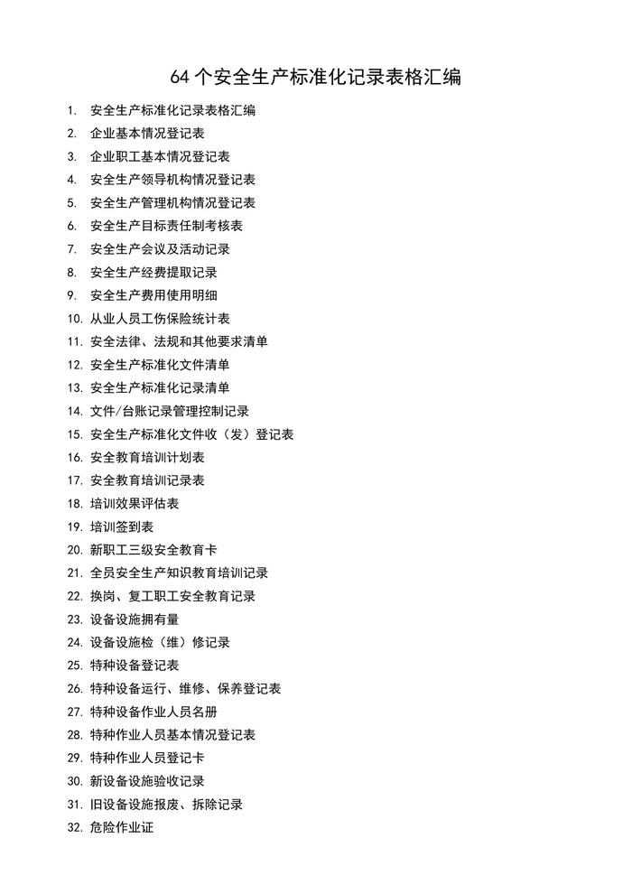 64個安全生產(chǎn)標(biāo)準(zhǔn)化記錄表格匯編docx