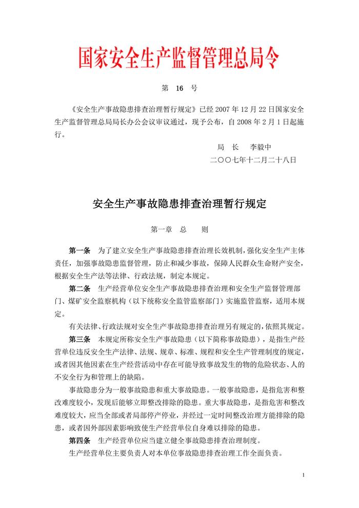 國家安全生產(chǎn)監(jiān)督管理總局令第16號(安全生產(chǎn)事故隱患排查治理暫行規(guī)定)doc