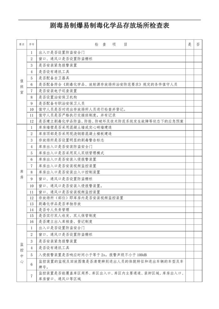 劇毒易制爆易制毒化學(xué)品存放場所檢查表doc