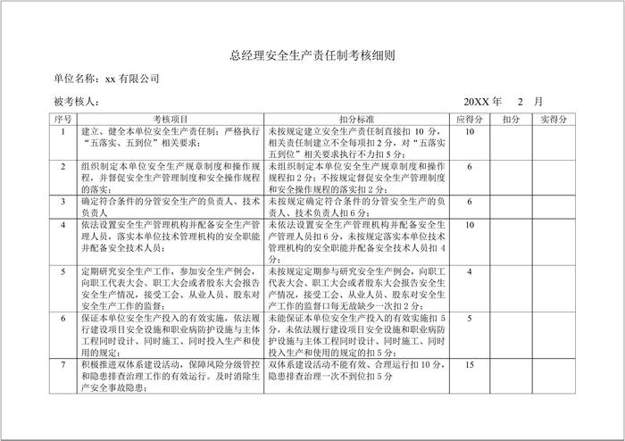 公司各級安全生產(chǎn)責任制考核細則表doc
