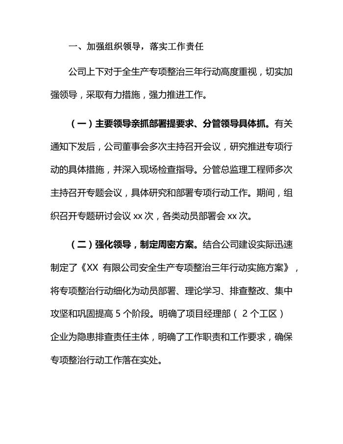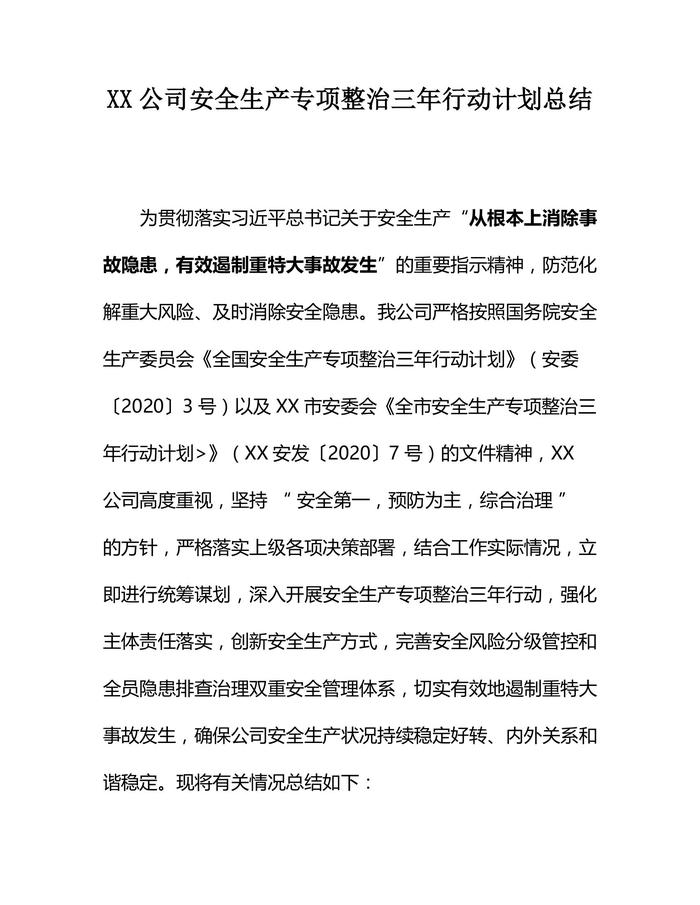XX公司安全生產(chǎn)專項整治三年行動計劃總結(jié)(18頁)docx