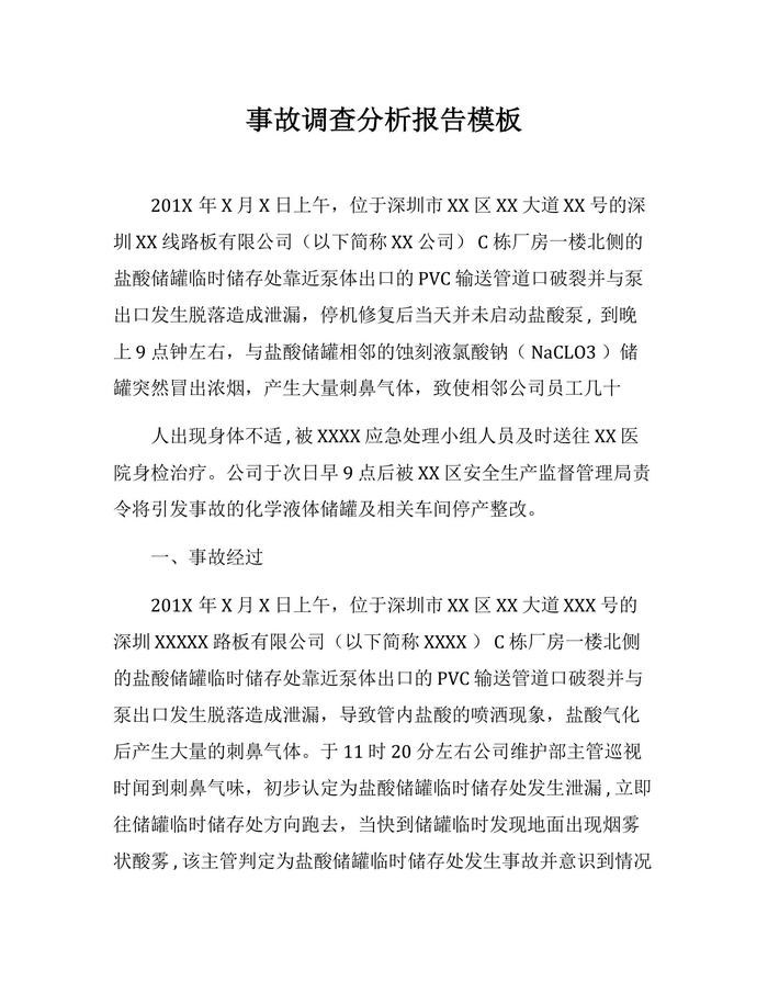 XX公司事故調(diào)查分析報(bào)告模板(15頁(yè))docx
