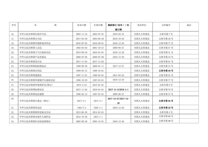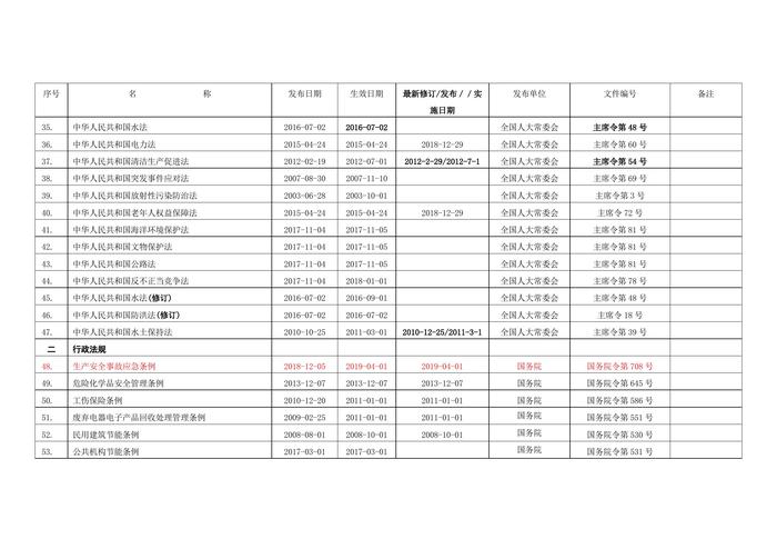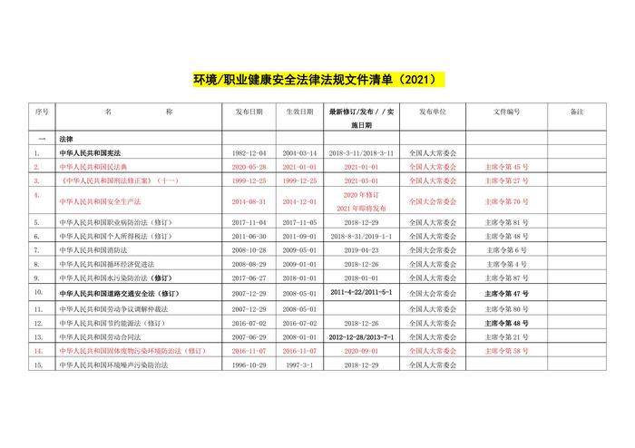環(huán)境職業(yè)健康安全法律法規(guī)文件清單(2021)(1)docx